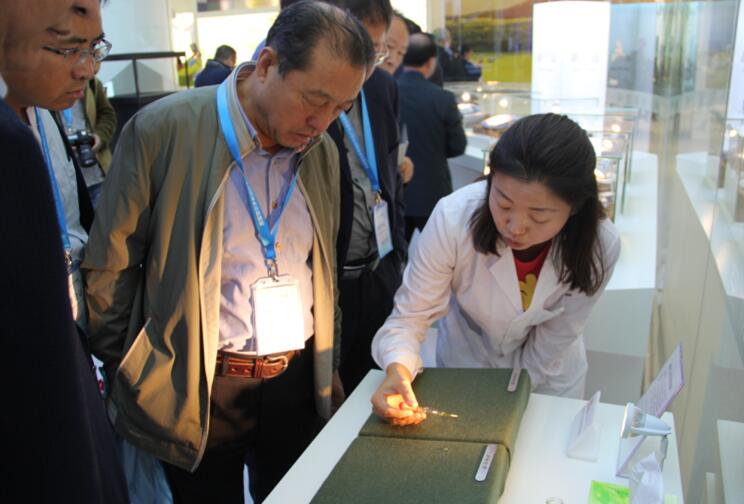 內(nèi)蒙古農(nóng)牧業(yè)產(chǎn)業(yè)化龍頭企業(yè)協(xié)會(huì)執(zhí)行會(huì)長(zhǎng)兼秘書長(zhǎng)林永亮觀看企業(yè)介紹新納米技術(shù)